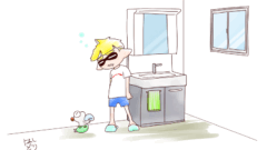 凍った湖のような場所で「魚の切り身」を探し